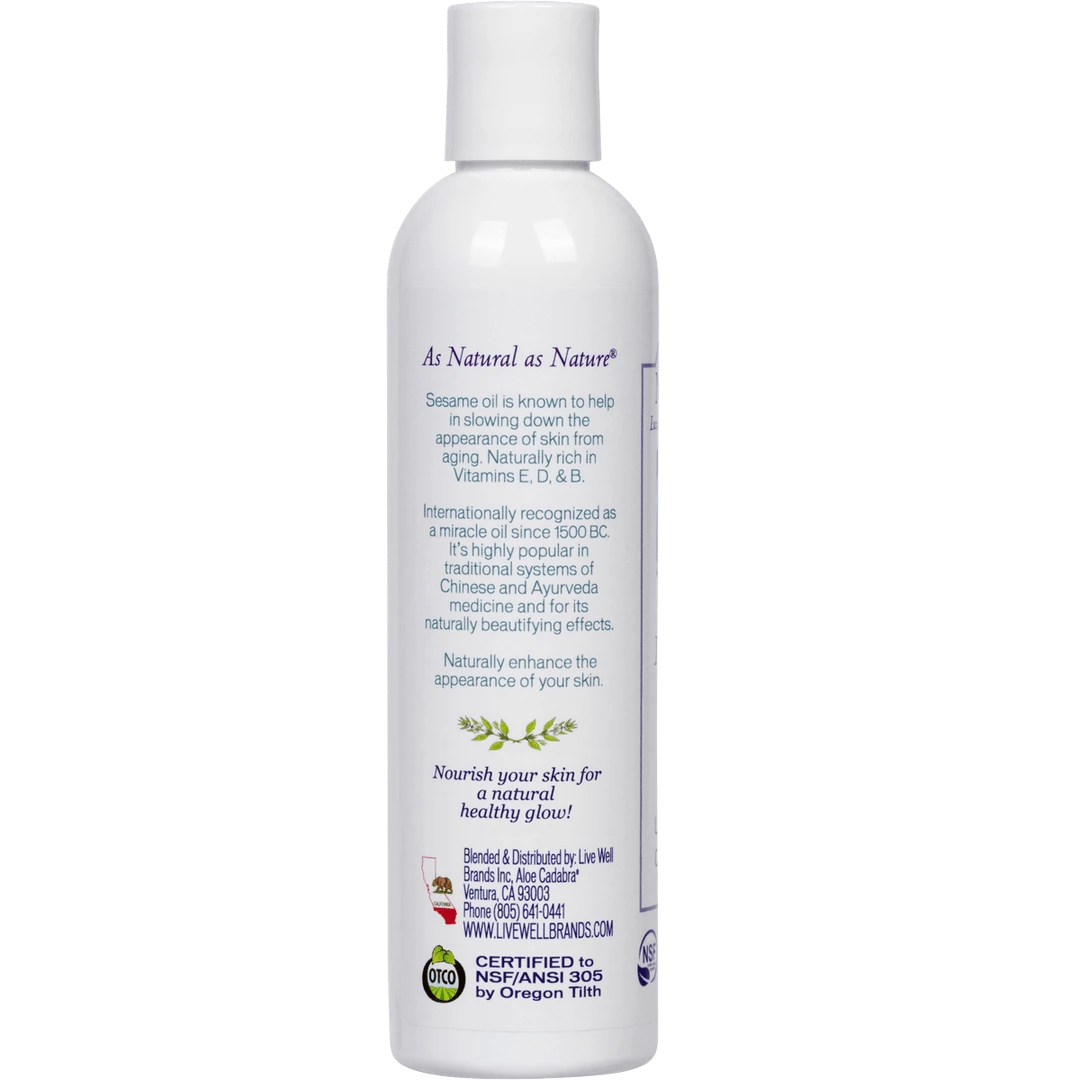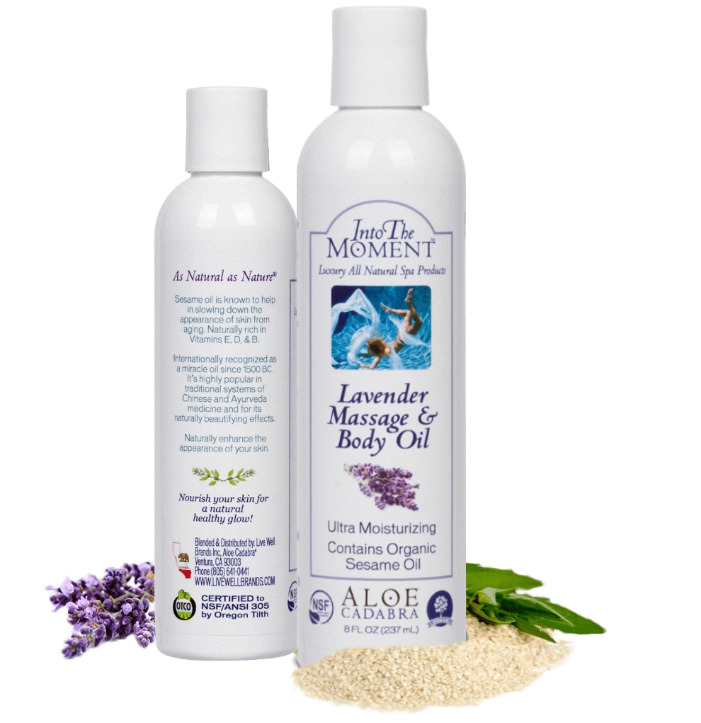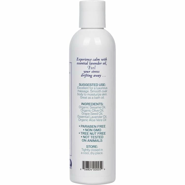INGREDIENTS: Organic Sesame Oil, Organic Olive Oil, Grape Seed Oil, Essential Lavender Oil, Organic Aloe Vera Oil