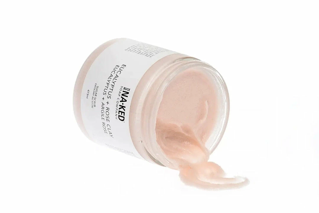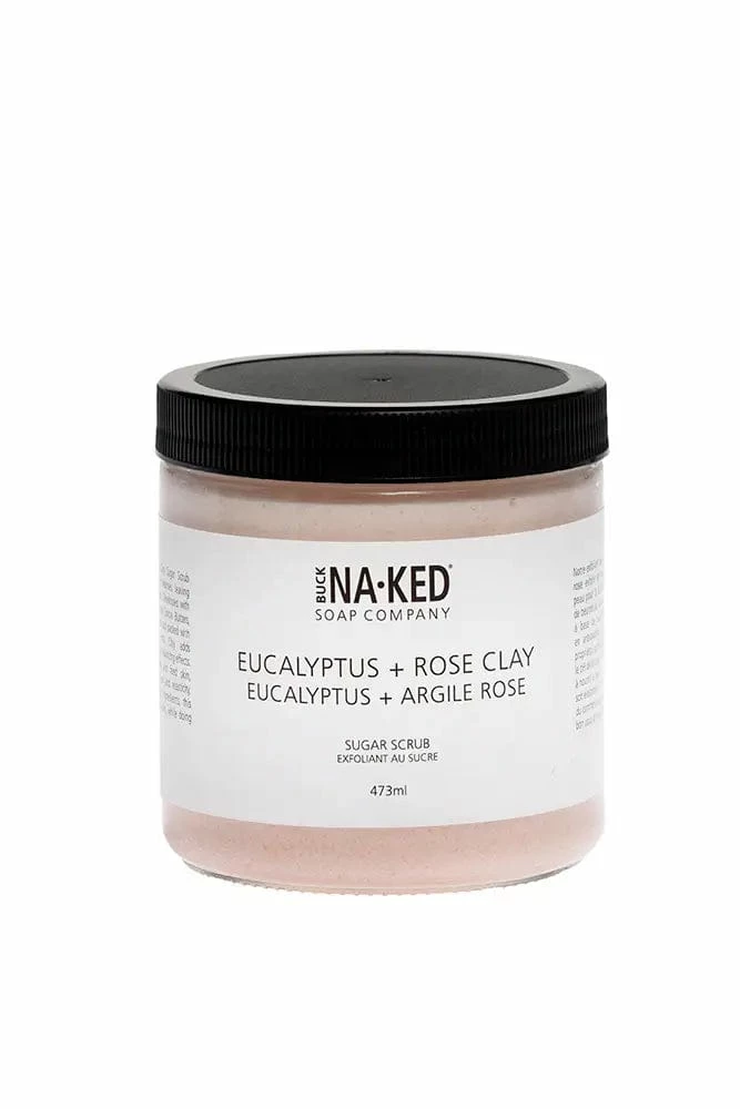 Our Eucalyptus + Pink Clay Sugar Scrub, gently exfoliates while it cleanses, leaving your skin silky and smooth. Developed with rich, moisturizing Shae and Cocoa Butters, our formula is soap based and packed with vitamins, antioxidants. Rose Clay adds additional cleansing and pH balancing effects. This scrub helps detoxify and feed skin, while improving tone and elasticity. Formulated with fair trade ingredients, this scrub does good for your skin, while doing good for our world.