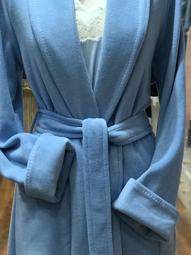 This Pluto Soft Fleece Long Robe has running stitch on cuff and collar. Luxurious.
