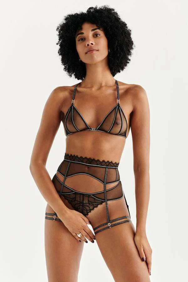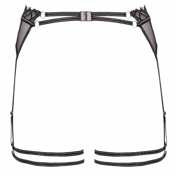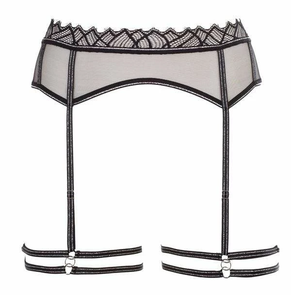 Made with recycled Italian lace, super sheer tulle, silver lurex elastic straps and silver appliqués that allow you to adjust the garment to each body. Place the leg straps as high up as possible to lift the bum and achieve a push up effect. It is the ideal complement to any look from the Manhattan Collection.
