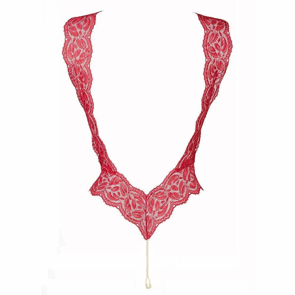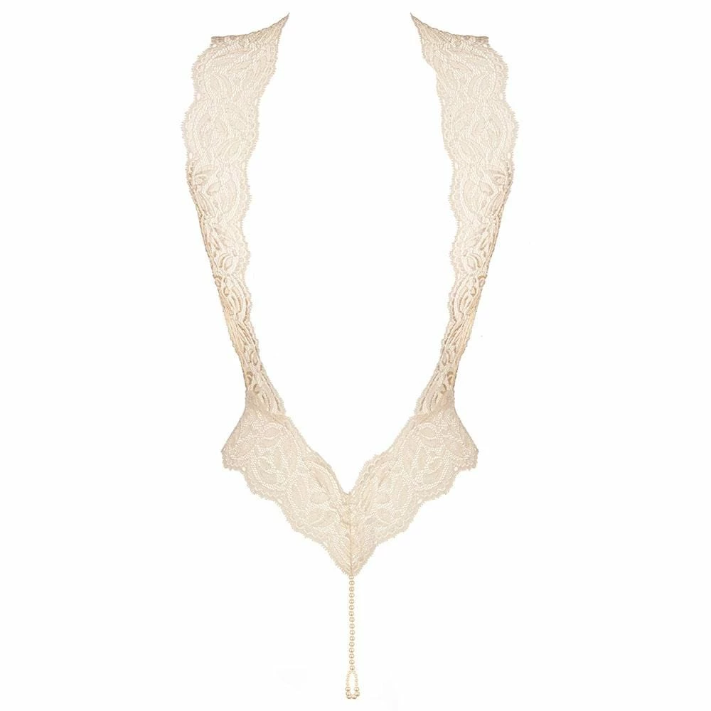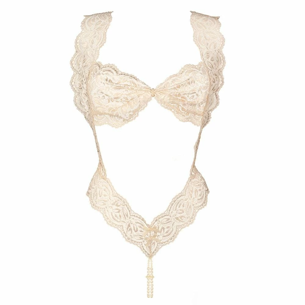 Stimulating chemise by Bracli. Babydoll encases the body is lace while a strand of pearls stimulates delicate flesh. A bra, pearl thong, and babydoll all in one. Tempt and tase all night long in this beautiful bodysuit.