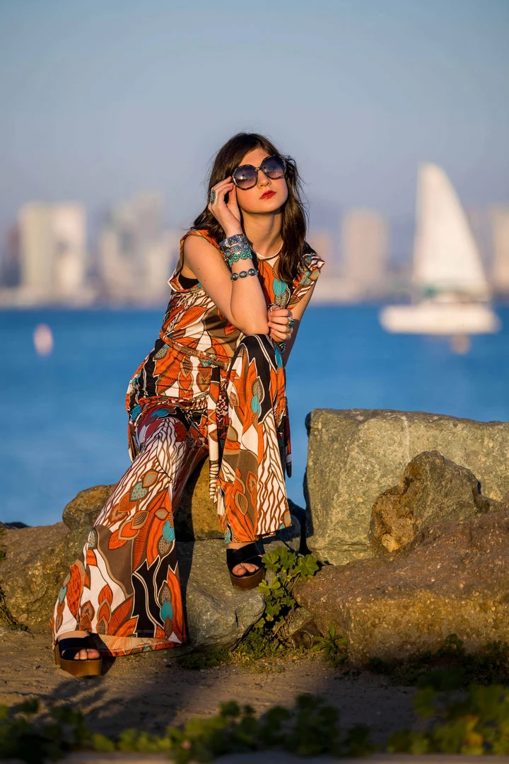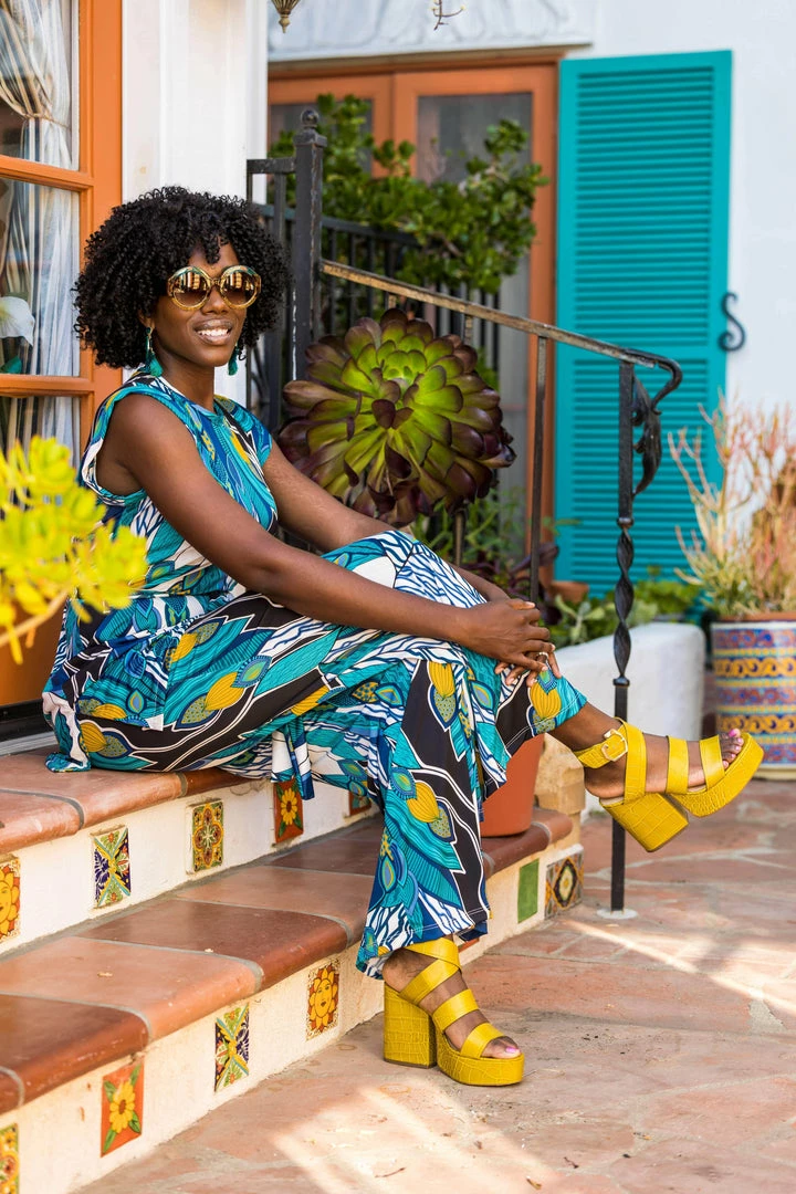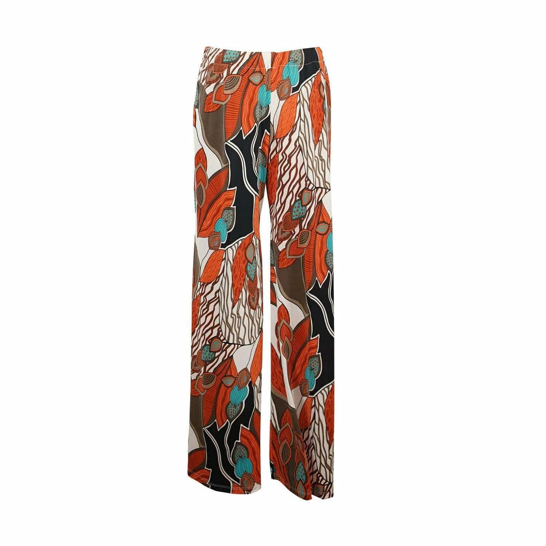 These palazzo pants were made from a lightweight abstract print jersey. Featuring pockets, elastic waist, and a soft hidden drawstring.