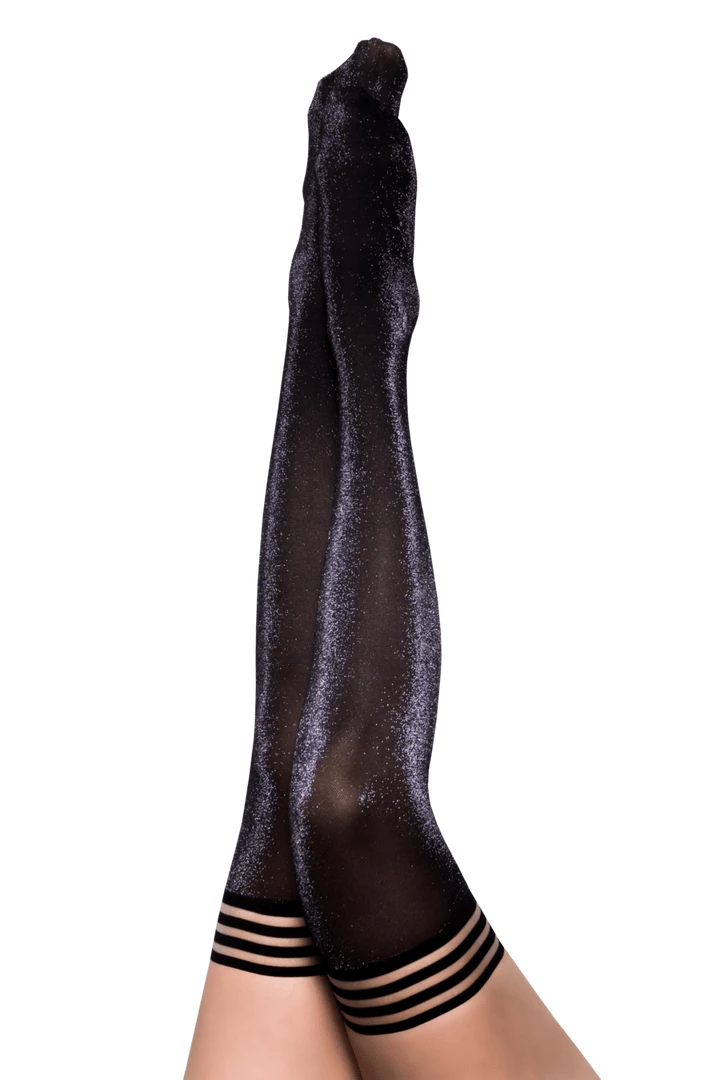 Kix’ies deep grey shimmer thigh-high tights are the answer to your going-out ensembles. The Kaylee thigh-highs, as elegant as they are functional, are the perfect way to kick it up a notch (or two) with any outfit.