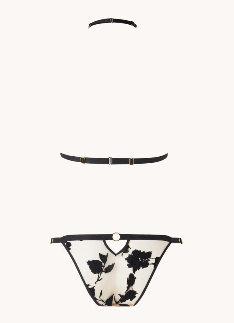 - Panty: Waistband is 5/8″ wide with adjustable goldtone metal hardware at both front sides.