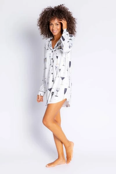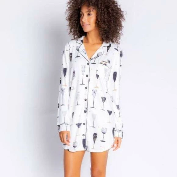 Celebrate with this sparkling cheers print that feels buttery and cozy! An extra long nightshirt that is the softest version of a boyfriend tee you’ve ever felt!