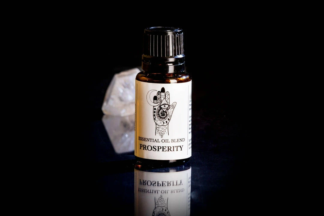 Organic essential oils: Patchouli, Orange, Cove & Cinnamon, organic fractionated coconut oil, encasing a crystal charged under the full moon