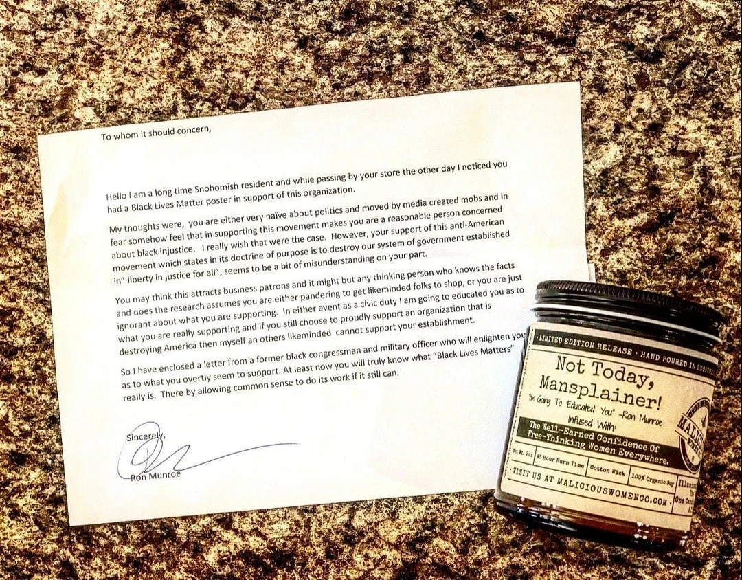 Thank you Rob Monroe for mansplaining BLM and how I am ruining my business. Please see the attached Fan Mail he took the time to write to us.