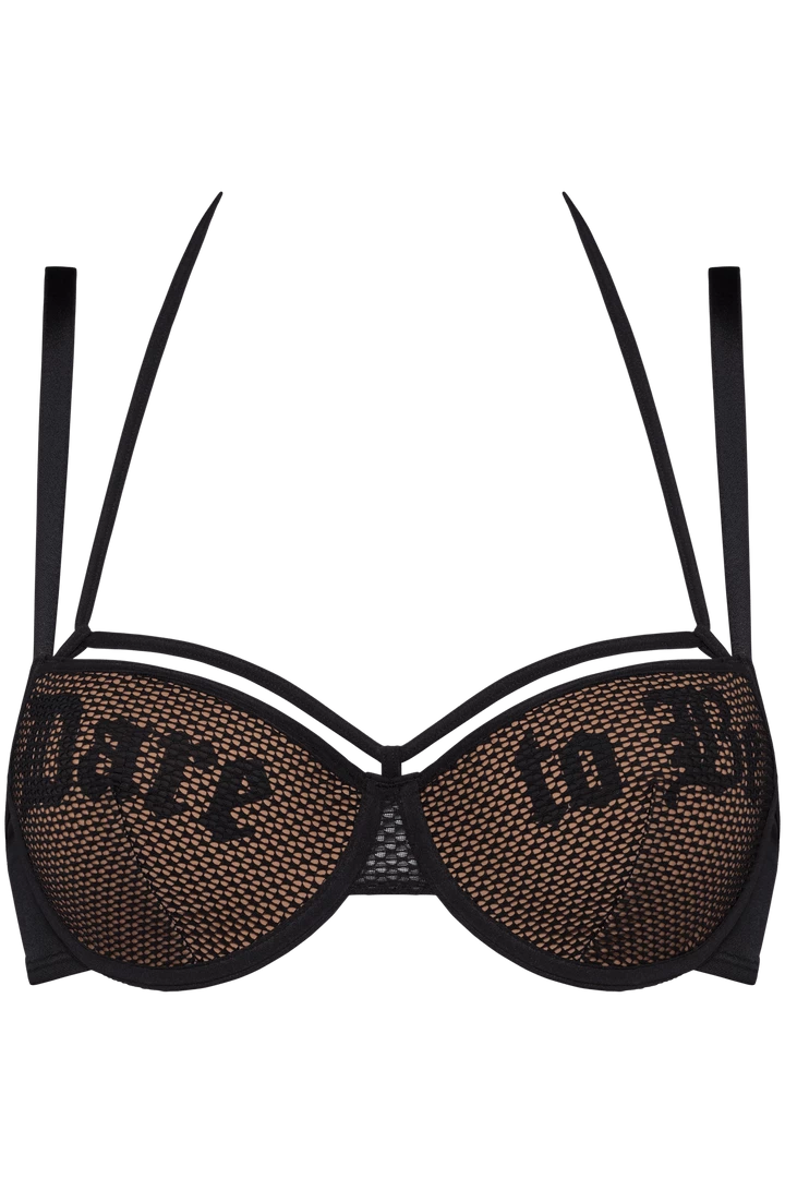 “This season, wear your lingerie like shining armor! My ode to legendary femme fatale Anne Boleyn is fiercely feminine, featuring sensual straps that frame your beauty. Doesn’t the black mesh overlay remind you of the glorious chain mail worn by female warriors? My motto, in Gothic handwriting, says it all: wear this collection and Dare to Be!” -Marlies Dekkers