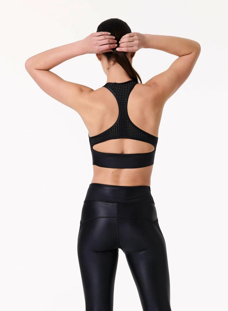 Performance meets chic in this racerback crop, perforated back detail and a wide band to give you the support you need. Removable cups