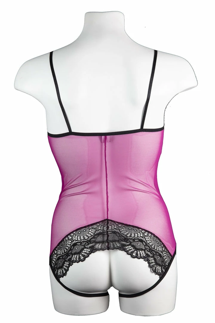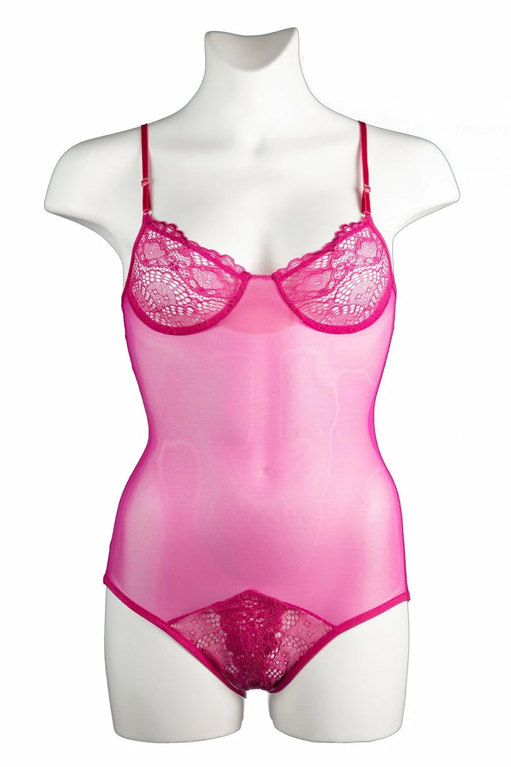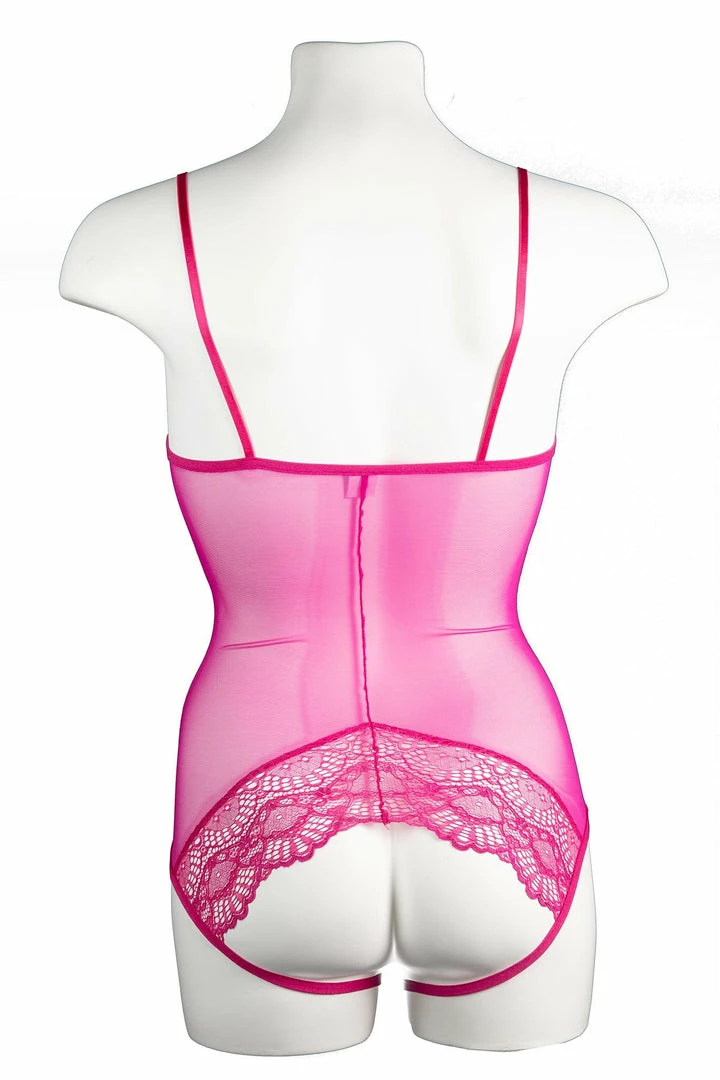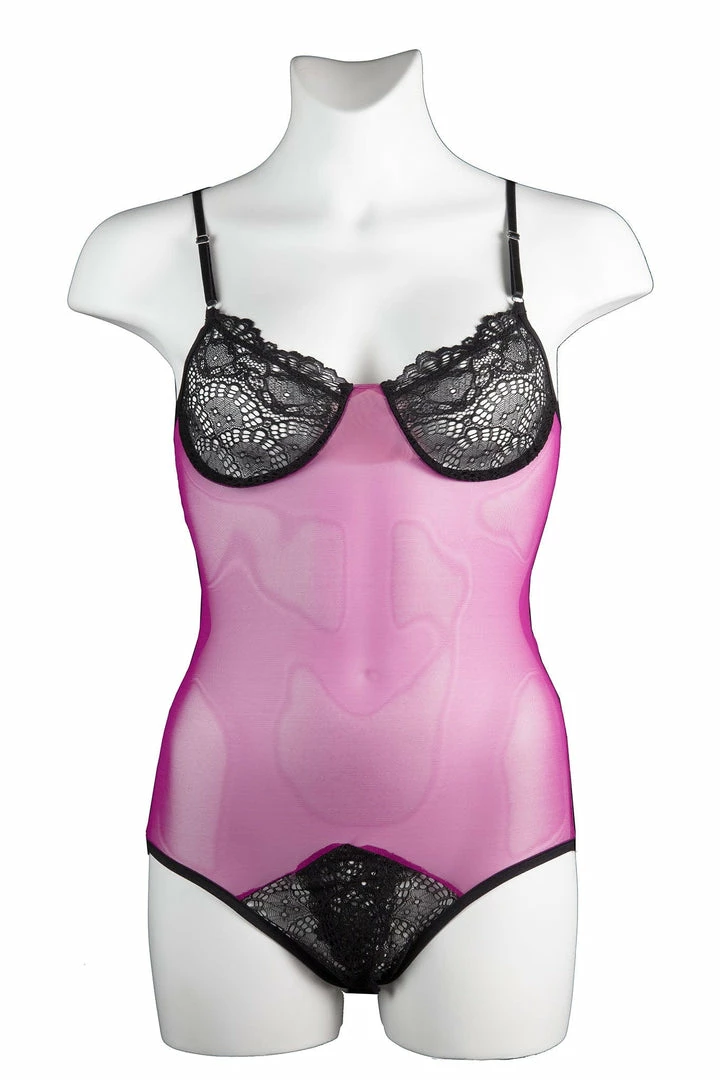 The Whisper Sweet Nothings Coucou Bodysuit is composed of goergeous scallop lace accents that are hardly discreet as they give way to our signature “peek-a-boo” gusset and a cheeky exposed bottom. The sheer mesh body also features lace cups and fully adjustable straps.