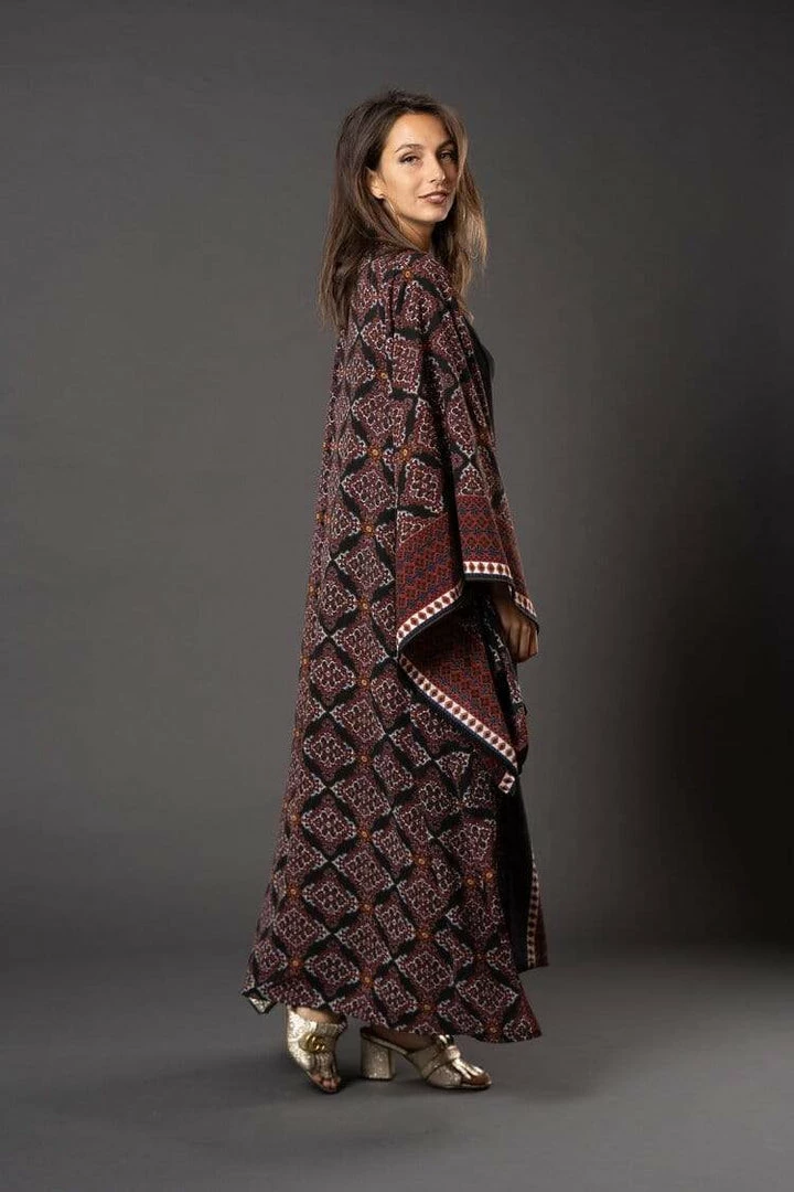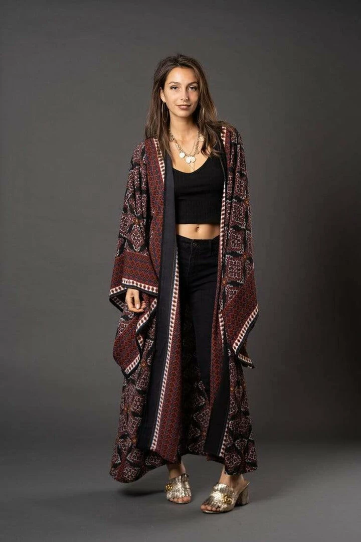 This staple border print kimono wrap dress was handmade in San Diego, CA from a soft mid weight bubble crepe georgette. Featuring POCKETS(!) and a matching waist tie-you can style this piece in at least 10 ways! Machine washable and wrinkle-proof-Perfect for travel, great for bridesmaid gifts!