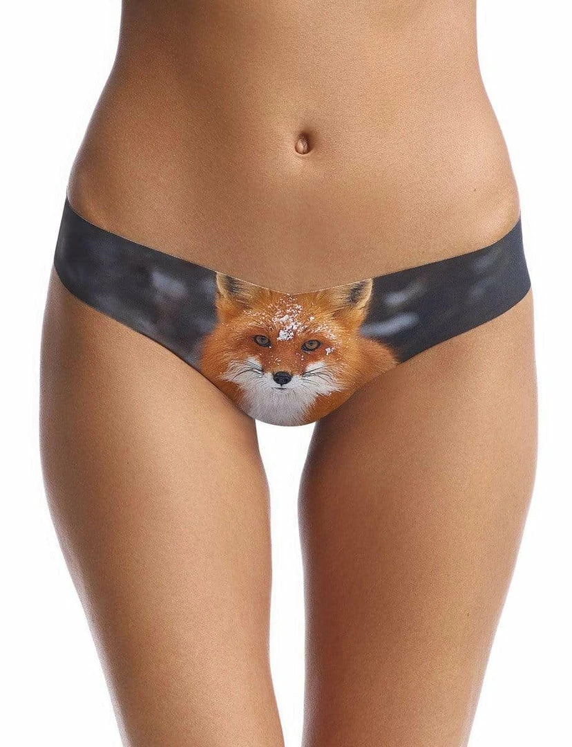 Photo Op Foxy Print thong. Seamless no show coverage. No panty lines and super comfortable for all day wear. Cute fox print on the front for a little extra flair. Feel foxy in the Foxy Thong.
