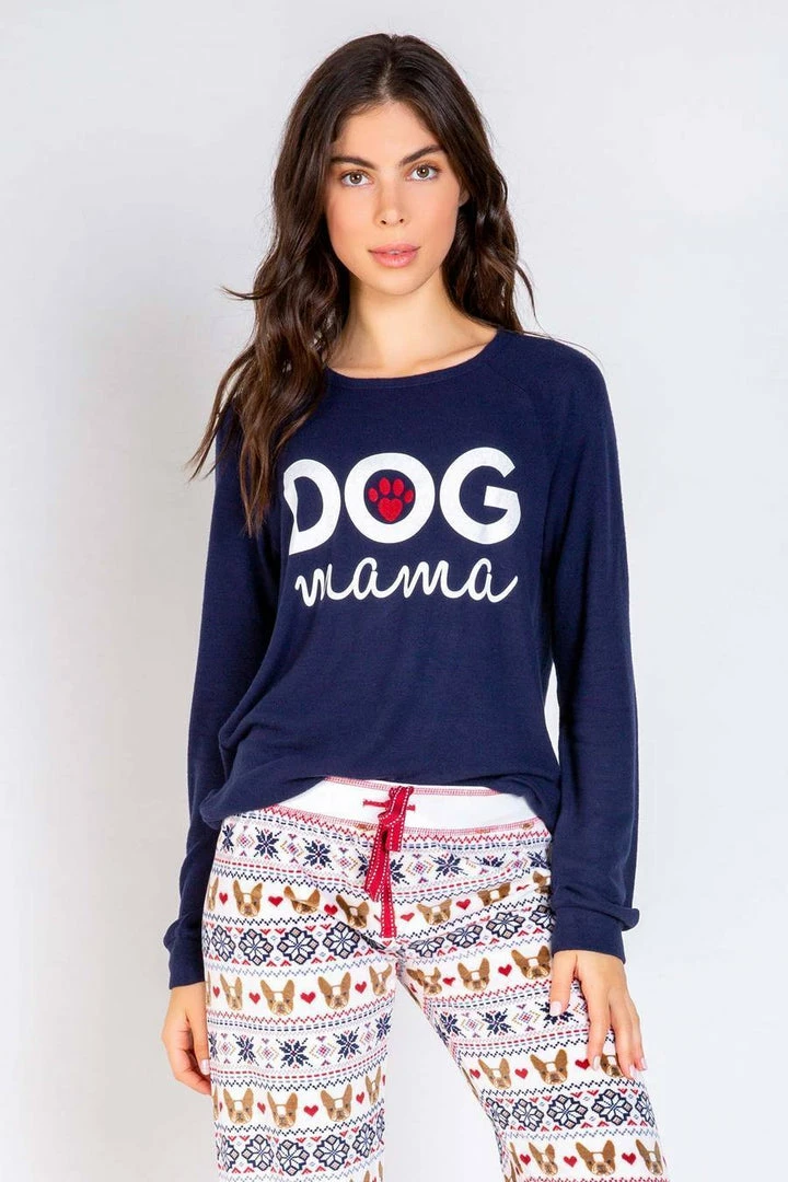PJ Salvage ultra soft long sleeve Dog Mama top. Long sleeve top is warm and comfy. Can be worn inside or outside as a warm and soft piece. Pairs well with the Dog mom pants.