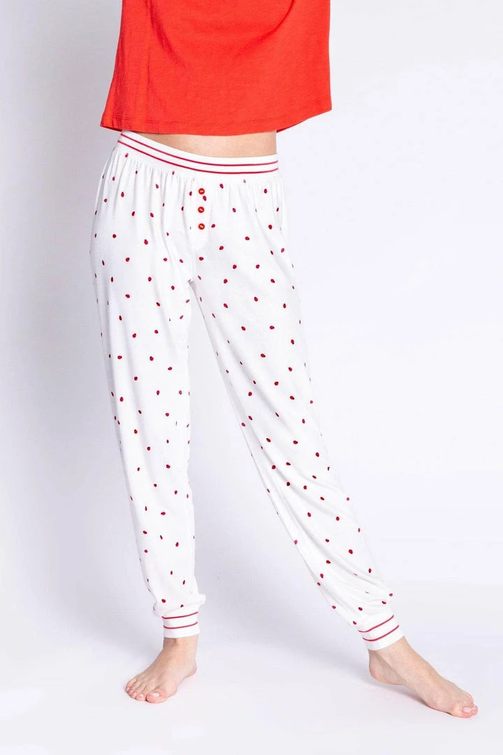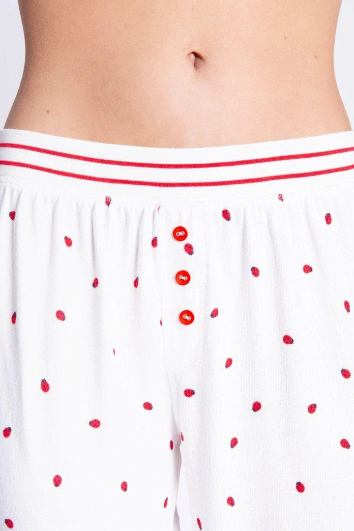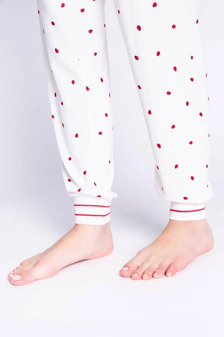 These butter jersey winter jammie pants deliver when it comes to keeping you warm and cozy. With the most adorable little ladybugs printed all over and cozy cuffs on the bottom, these butter soft pajamas are sure to please on cold nights.
