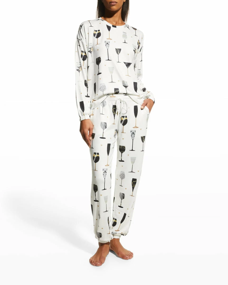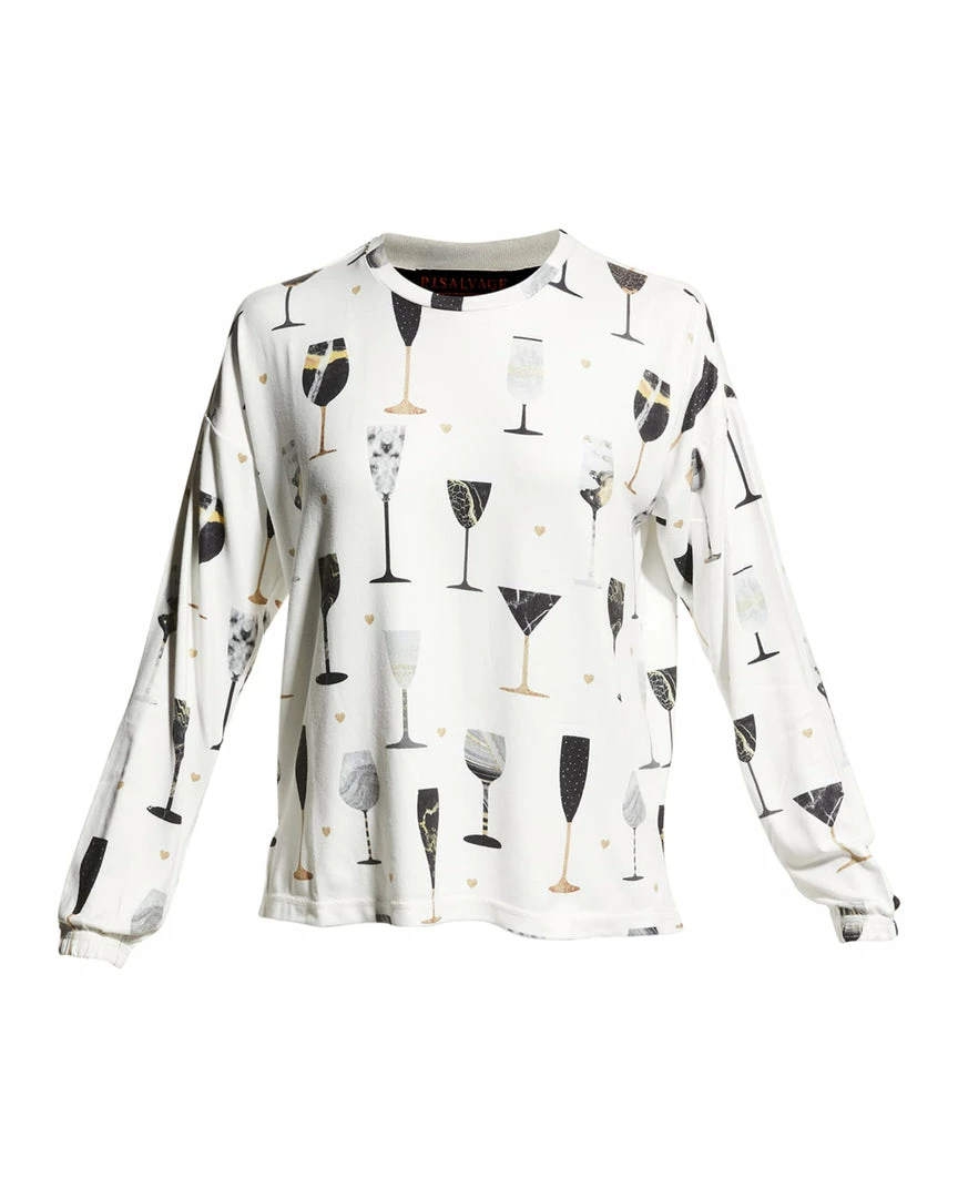 Celebrate with this sparkling cheers print that feels buttery and cozy! You’ll love the cuffed wrists that help you stay warm and keep your top where you need it.