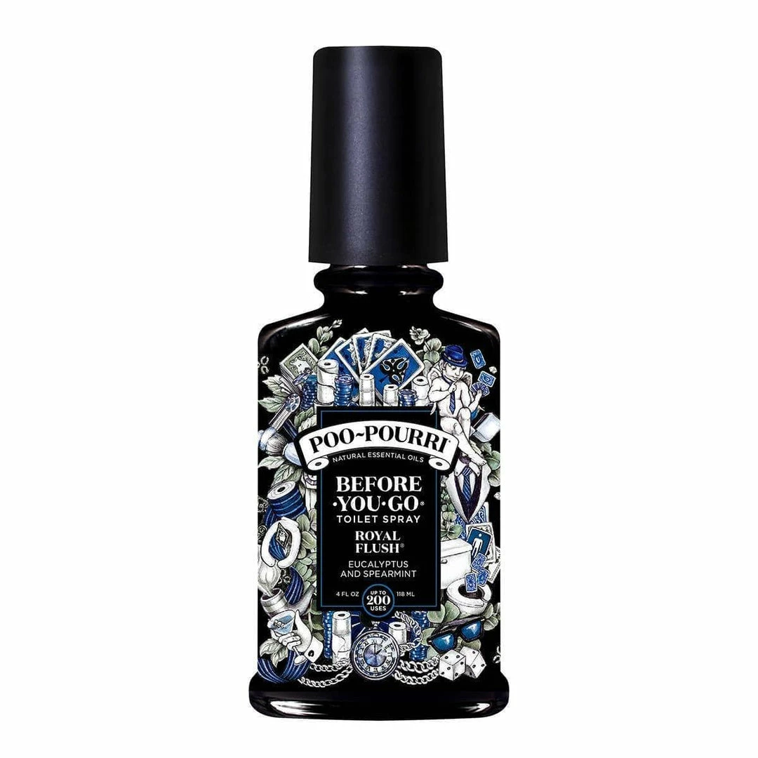 Royal flush is a blend of eucalyptus and spearmint natural essential oils that eliminates bathroom odor before it begins.We use no synthetic fragrance, parabens, phthalates, aerosols, alcohol, or formaldehyde.