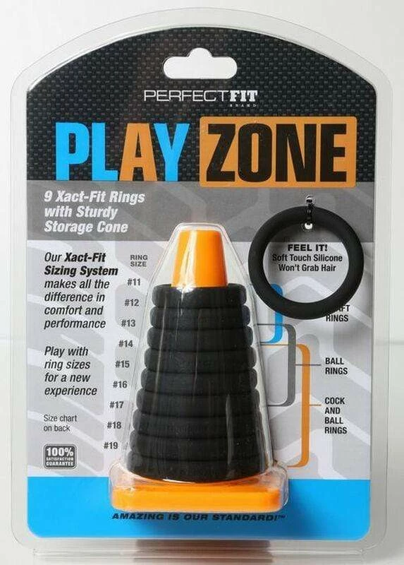 Our fun Play Zone kit contains the nine most used Xact-Fit sizes for use on different areas of the penis and testicles. Sizing makes all the difference. The Xact-Fit ring is premium quality and incredibly strong. We made them not too stretchy, so the rings are effective, but easier to get on and off than a metal ring. Each ring is stamped with its size so no more guessing!