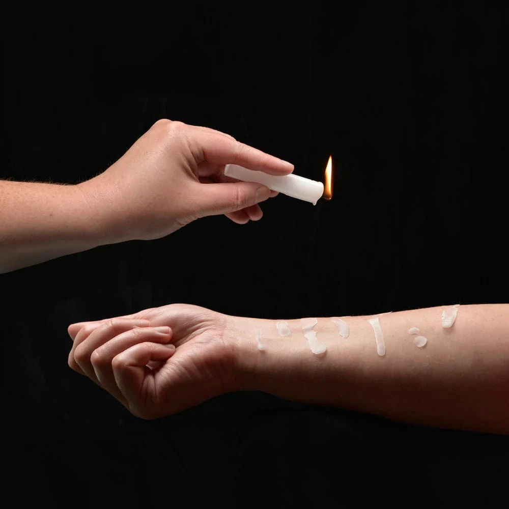 Hold the candle at an angle to control the flow of the wax and drizzle warm pleasure onto your lover’s body. Massage in and leave on until it cools. Once dried, easily peels off. Candles should be a minimum of 36″ from the skin to allow wax to cool before contact.