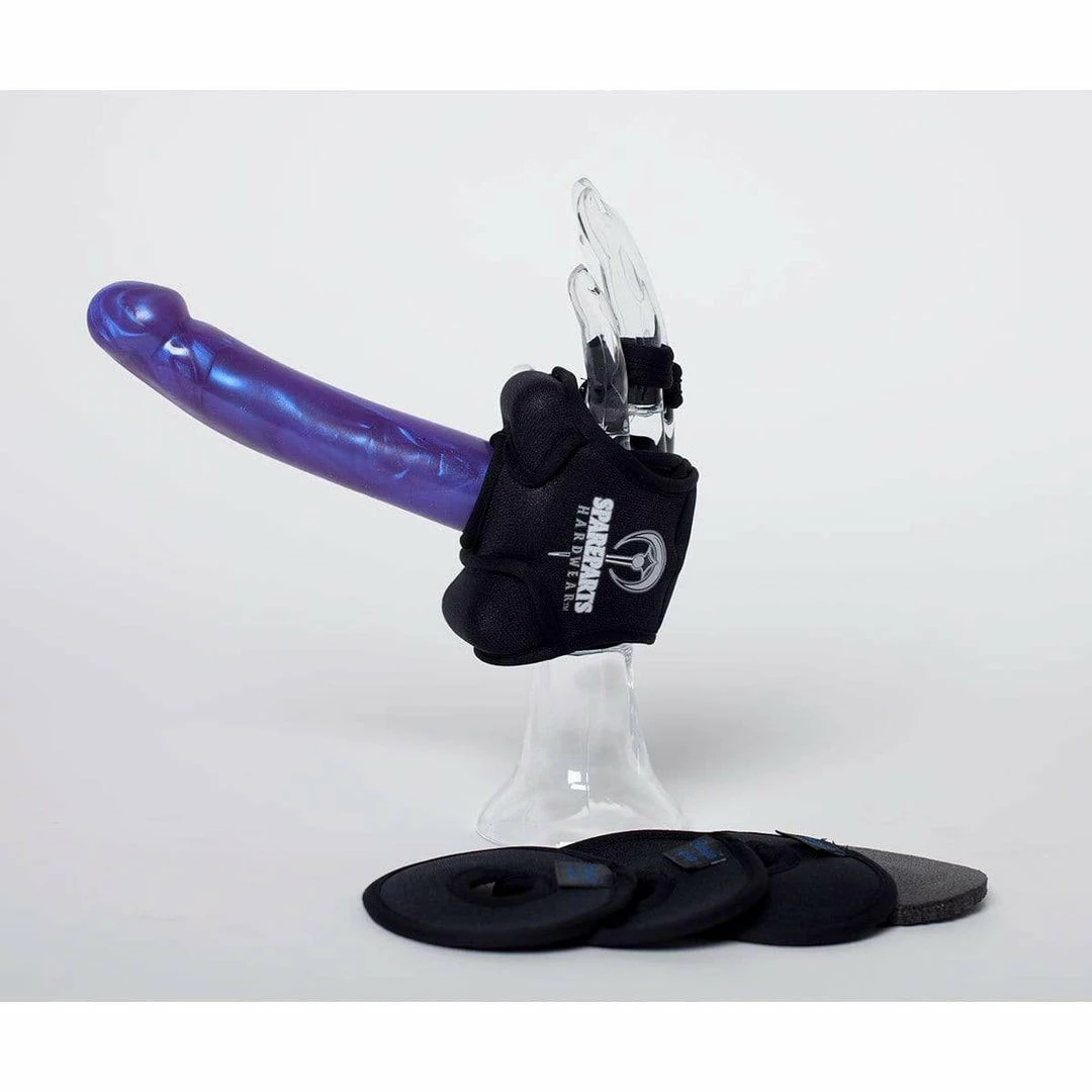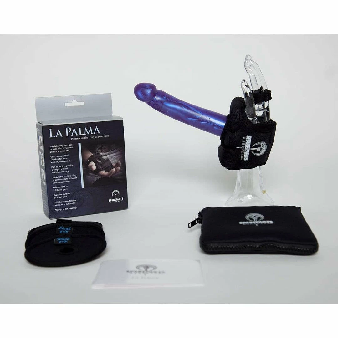 The La Palmaª is a revolutionary hand harness that provides a near custom fit, allowing for the secure hold of any dildo. Two small pockets above the O-ring accomodate mini bullet vibrators (not included) and its stretchable O-ring fits a variety of toys. The La Palmaª is easily adjustable and washable.