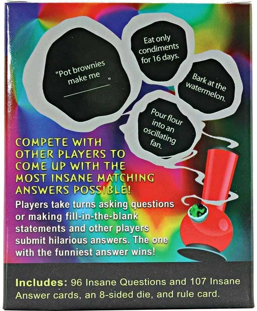 Includes: 96 Insane Questions and 107 Insane Answer cards, an 8 sided die, and rule card.